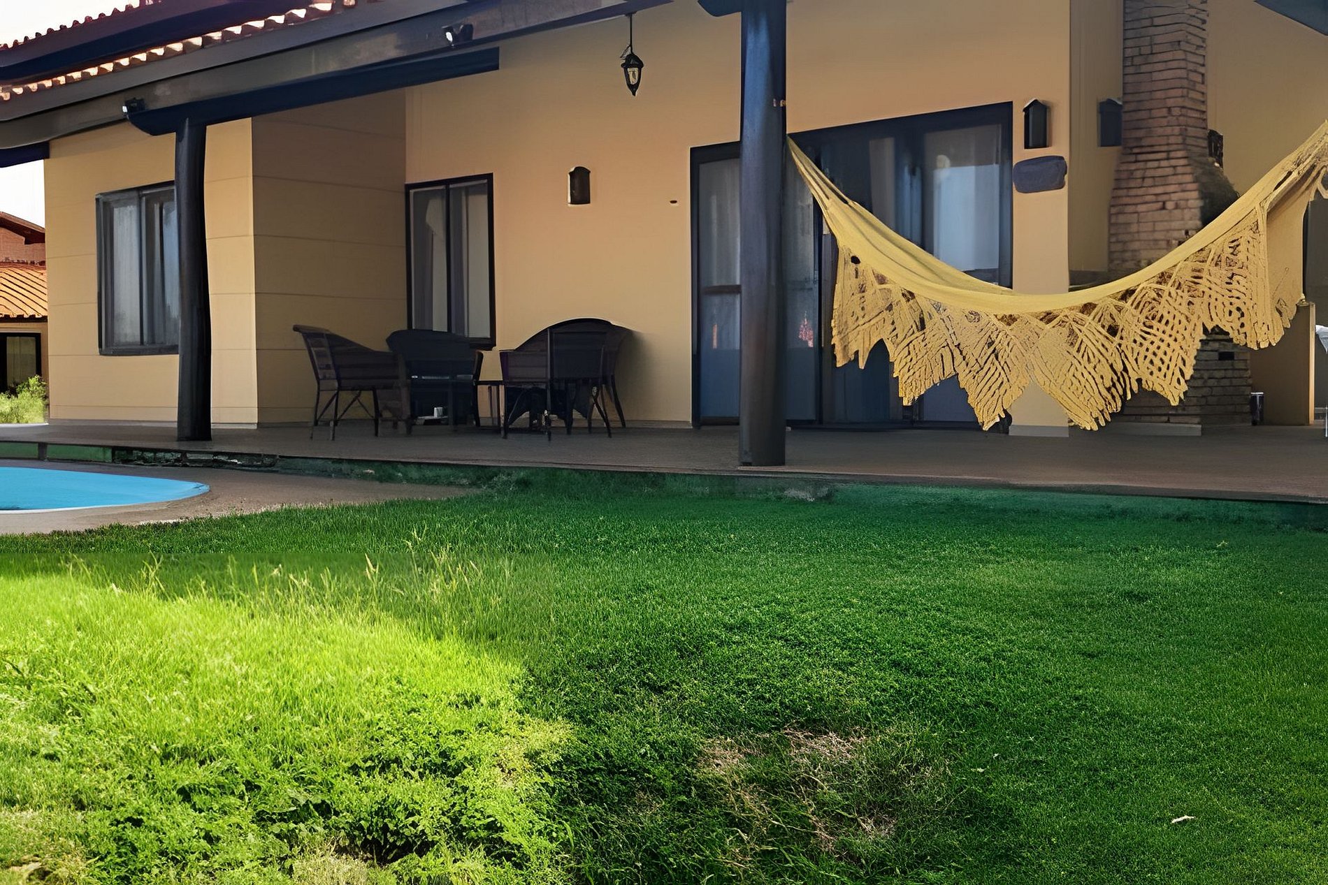 O Chalé com piscina privada fica na Praia de Zumbi, Condomínio beira mar e com segurança 24 horas. Possui 3 quartos com cama para 6 pessoas e máximo permitido de até 10 pessoas contando com crianças, oferece churrasqueira, wi fi privado e piscina. Equipado com varanda, ar-condicionado em todos os quartos, TV aberta, cozinha equipada e 2 banheiros. 1 vaga de estacionamento e demais carros podem ficar em frente ao condomínio.