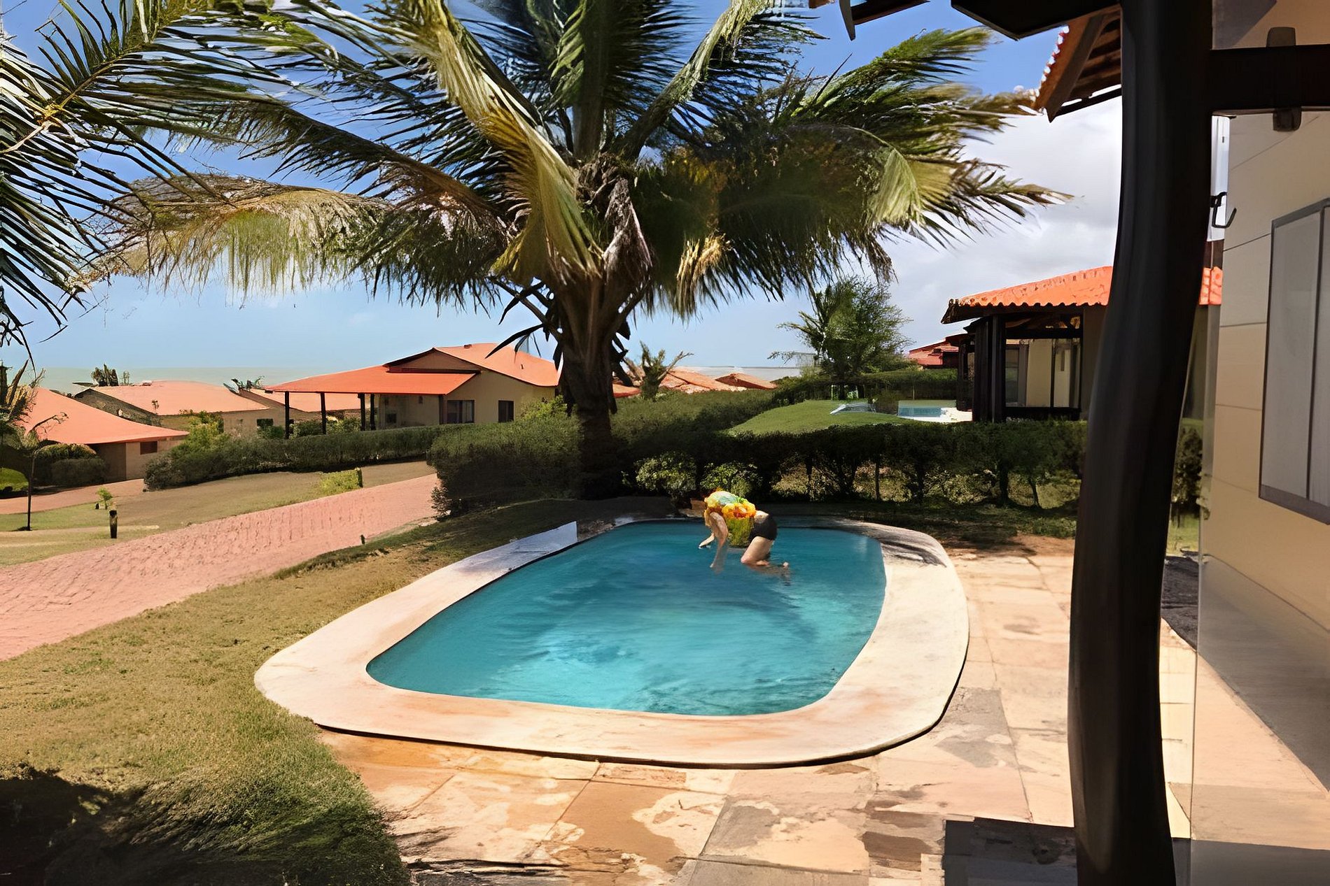 O Chalé com piscina privada fica na Praia de Zumbi, Condomínio beira mar e com segurança 24 horas. Possui 3 quartos com cama para 6 pessoas e máximo permitido de até 10 pessoas contando com crianças, oferece churrasqueira, wi fi privado e piscina. Equipado com varanda, ar-condicionado em todos os quartos, TV aberta, cozinha equipada e 2 banheiros. 1 vaga de estacionamento e demais carros podem ficar em frente ao condomínio.